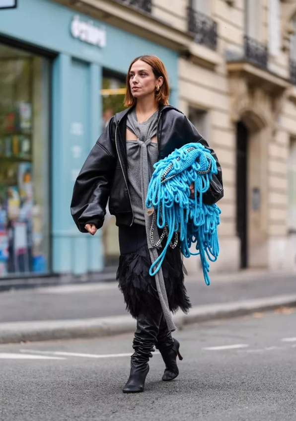 - Weekend Street Style: Chunky-sole slouchy boots + relaxed jeans + leather jacket, topped with an oversized tote.